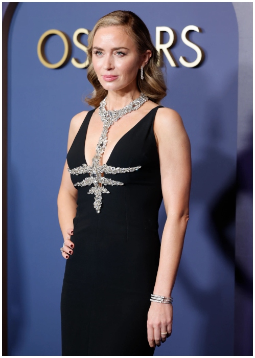 Blunt’s decision to attend the Governors Awards alone, especially so soon after the Golden Globes, has naturally led to intensified rumors about her marriage to Krasinski. Dressed in a stunning black gown that seamlessly blended elegance with sophistication, her solo presence did not go unnoticed. The dress, featuring a daring plunging neckline that elegantly transitioned into a necklace, complemented by tasteful bangles and drop earrings, made a bold statement. Yet, it was her unaccompanied appearance that became the focal point, adding fuel to the speculative fire regarding her personal life.